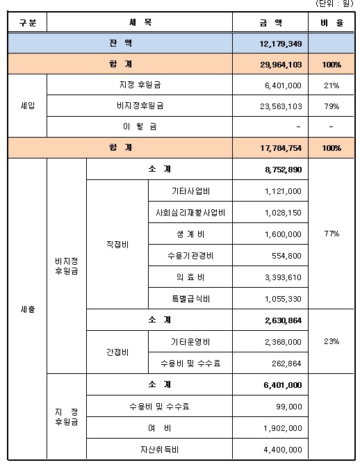 Âü»ù¸¶À»¿¡¼­´Â 2012³â ÈÄ¿ø±Ýǰ ¼öÀÔ ¹× »ç¿ë°á°ú¸¦ ¾Æ·¡¿Í °°ÀÌ °ø°íÇÕ´Ï´Ù.